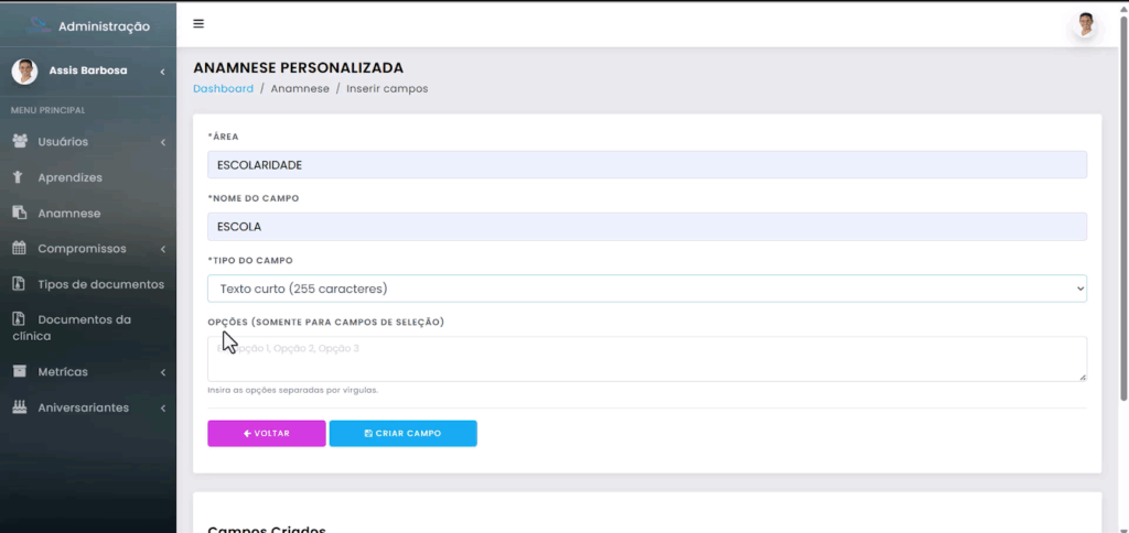 - Flexibilidade para criar formulários sob medida: A clínica tem total liberdade para estruturar a anamnese de acordo com suas metodologias internas. Isso garante que apenas informações verdadeiramente relevantes sejam coletadas.